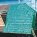 Tissu à bandelettes PEHD avec enductions PE sur les deux faces, renforcé sur les quatre côtés par des bandes à oeillets pré-perforées et deux bandes réparties en milieu de bâche (oeillets espacés de 10 cm).